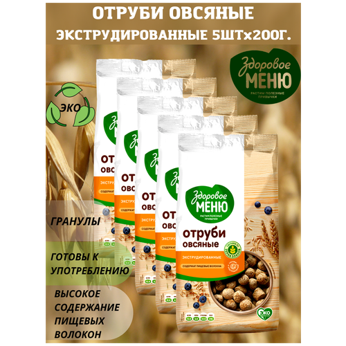 Набор Отруби пищевые Здоровое меню экстудированные овсяные в гранулах 200гх5шт