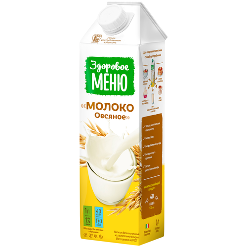 Молоко овсяное, обогащенное кальцием и витаминами, "Здоровое меню", 1 л