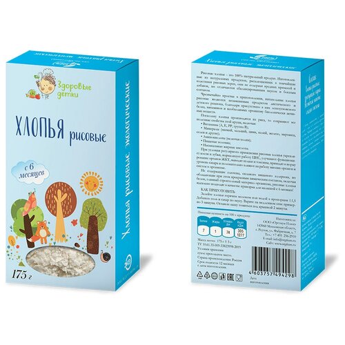 Хлопья рисовые, детское питание Здоровые детки, 175г с 6 мес