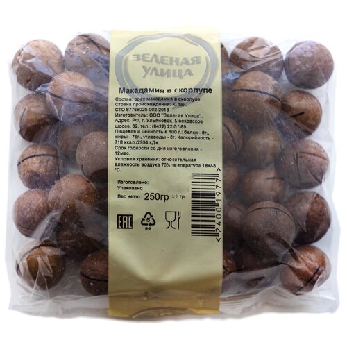 Макадамия в скорлупе 250 гр / Вкусные снэки / Натуральный ЭКО-продукт / Зеленая Улица / Здоровое питание