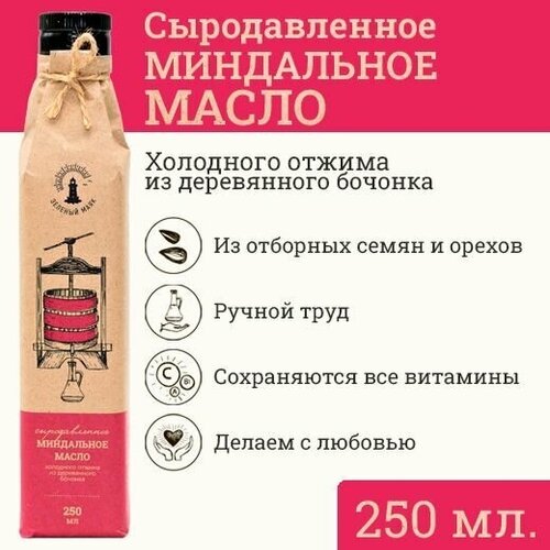 Сыродавленное миндальное масло Зeлeный мaяк 250мл первого холодного отжима, пищевое нерафинированное
