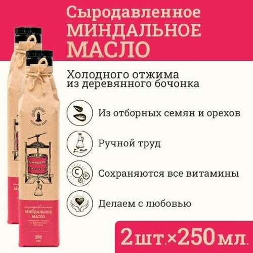 Сыродавленное миндальное масло Зeлeный мaяк 2 шт. по 250мл первого холодного отжима, пищевое нерафинированное
