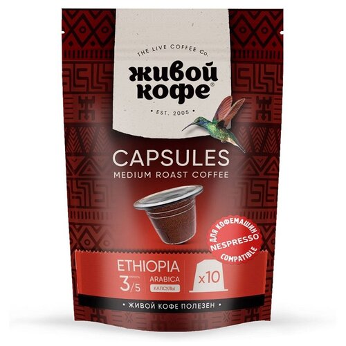 Капсулы Живой кофе Ethiopia Sidamo для кофемашины Nespresso (неспрессо)50 гр (10 капсул по 5 гр)
