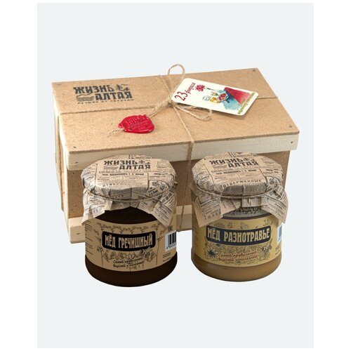 Мёд Гречишный "Жизнь Алтая" 300гр+Мёд Цветочный, "Жизнь Алтая" 300гр. Год сбора:2024г .(2*300 гр)