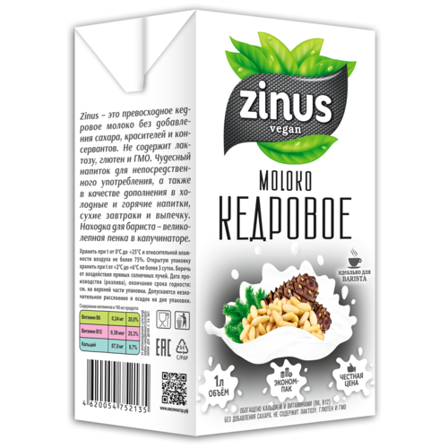 Zinus Молоко кедровое, 1000 мл
