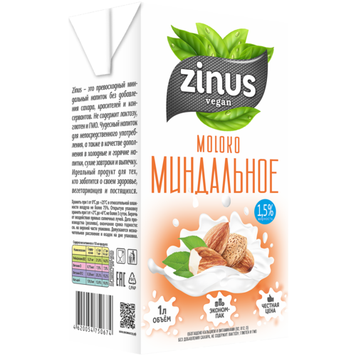 Миндальный напиток Zinus миндальное 1.5%, 1 л