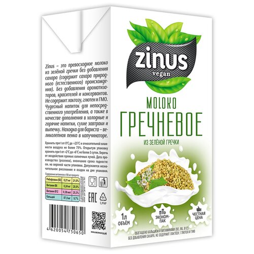 Молоко гречневое "ZINUS" 1л (3 шт. в наборе)