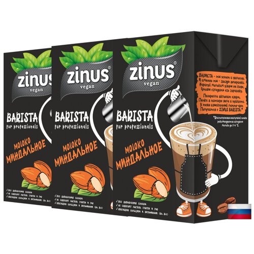 Молоко миндальное ZINUS Barista, 3 шт по 1 л