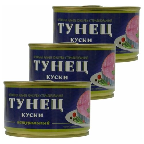 Тунец натуральный макрелевый, Золотистая рыбка, ГОСТ, 3 шт. по 250 г