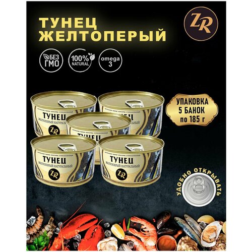 Тунец желтоперый натуральный, Золотистая рыбка, ГОСТ, 5 шт. по 185 г