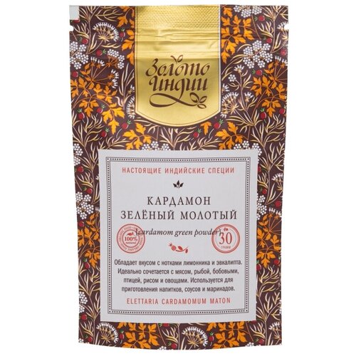 Приправа золото индии Кардамон зелёный молотый (Cardamom Green Powder) 30 г