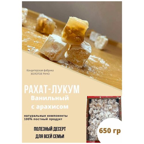 Рахат-лукум ванильный с арахисом 650г, Золотое руно/восточные сладости/полезный десерт/лакомство для всей семьи