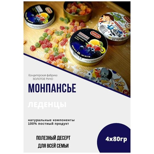 Монпансье леденцы ж/б 80грх4шт/Карамель фруктовая/ в жестяной банке