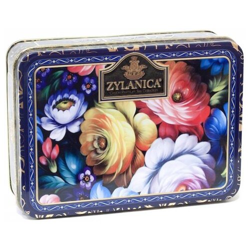 Чай Zylaniсa листовой чёрный цейлонский шкатулка с цветами Blue Super Pekoe 100 гр ж/б Шри-Ланка