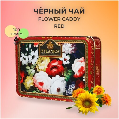 Черный чай листовой Zylaniсa Red шкатулка с цветами, Super Pekoe 100 гр ж/б