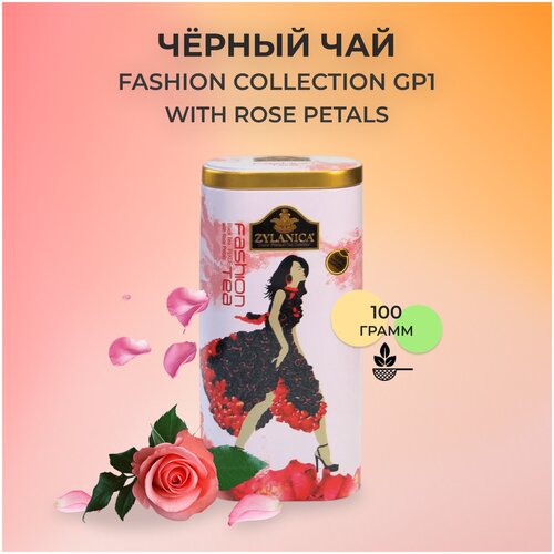 Черный чай листовой Zylaniсa Fashion Collection с лепестками роз, Pekoe 100 гр ж/б