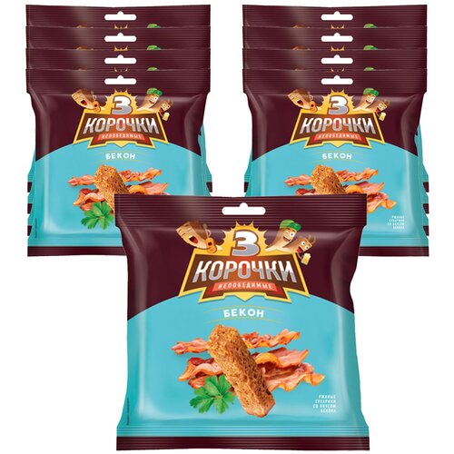 Современная технология сохраняет полезные свойства злаковых культур и обеспечивает сухарикам незабываемый вкус. «3 Корочки», сухарики со вкусом бекона, 9 пачек по 40 г Срок годности: 9 месяцев