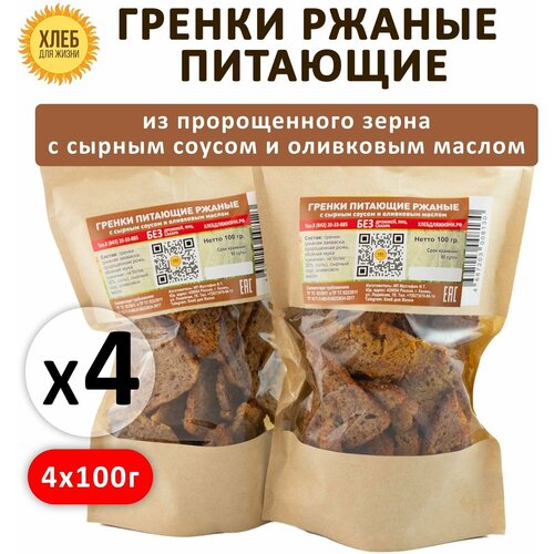 В составе этих гренок только самое необходимое: пророщенное зерно, ржаная закваска, соль, оливковое масло и сырный соус.