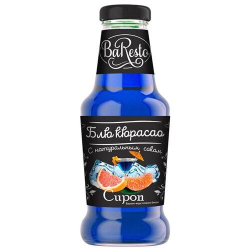Сироп «Блю Кюрасао» популярен во всем мире, является незаменимым ингредиентом для приготовления известных коктейлей. Отличается характерным насыщенным синим цветом. Вкус у сиропа изысканный, насыщенный ароматом экстракта апельсина, который является ключевым ингредиентом данного сиропа. Такой продукт питания, как сироп для кофе и коктейлей, с легкостью заменит сладости, мед , варенье. Для удобства использования можно перелить сиропы в бутылку с дозатором.