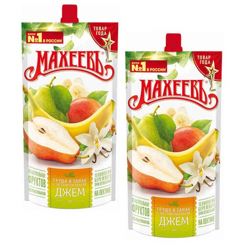 Джем Махеевъ Груша и банан с экстрактом ванили. Абсолютно новое направление в сладкой группе тройной вкус. Композицию из кусочков спелой груши и шелкового банана прекрасно дополняет натуральная ваниль. Джем нежной, обволакивающей консистенции с ярким вкусом фруктов и ванильным послевкусием.