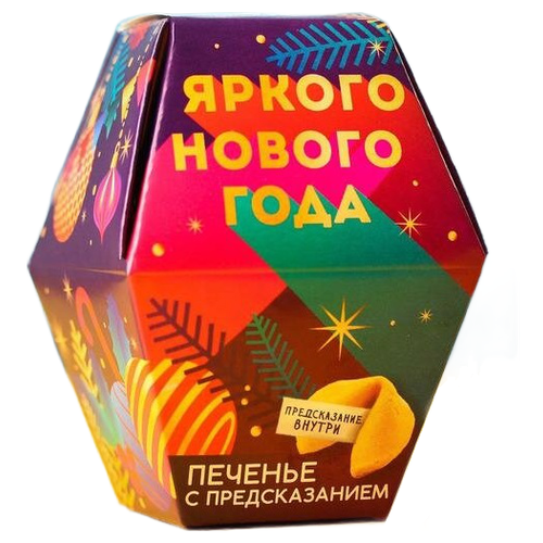 Артикул: 1590-704. Вес: 16 гр, Размер упаковки: 7 x 7 x 10 см, Температурное ограничение: Нет, Вес нетто, г: 6, Символ года: Нет, Новогодняя коллекция: Стильная серия: Яркого года, Тематика праздника: Новый год, Вид: С предсказанием. Состав: мука пшеничная в/с, растительное масло, сахар-песок, вода, яичный порошок, ванилин, ароматизатор, идентичный натуральному. Срок годности: 12 месяцев с даты изготовления. Масса нетто: 6 гр.
