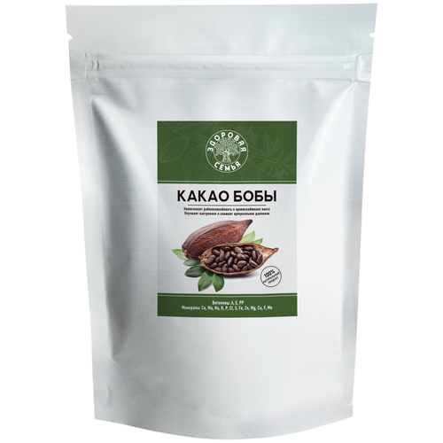 Какао-бобы, сорт Форастеро, Здоровая Семья, 1 кг ( 1000 г), сырые необжаренные отборные