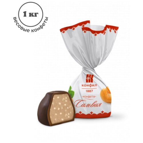 Сальвия — конфета с тонким ароматом ликера “Бейлиз” на основе нежного шоколадно-орехового пралине с добавлением сухого молока с большим количеством дробленого жареного ореха кешью. О бренде: ЗАОр "НП "Конфил" является крупнейшим в Нижнем Поволжье кондитерским предприятием и входит в число двадцати крупнейших кондитерских фабрик России. Существенными преимуществами продукции ЗАОр «НП Конфил» на современном кондитерском рынке являются следующие факторы: выпуск продукции только в соответствии с требованиями госта. использование в производстве только натурального сырья, без применения консервантов и ГМИ (генетически модифицированных ингредиентов). Применение консервантов и других химических добавок по продлению срока годности на производстве ЗАОр «НП Конфил» исключено. первичная переработка какао-бобов и всех видов ореха, т. к. только использование в производстве свежеобработанных орехов дает возможность получить продукцию с ярко выраженным свежим ореховым вкусом. для обеспечения устойчивого качества продукции на предприятии осуществляется лабораторный контроль, начиная от приемки сырья и заканчивая готовой продукцией. Предприятие имеет собственную микробиологическую лабораторию, которая до сегодняшнего дня не является обязательным требованием для кондитерской промышленности.