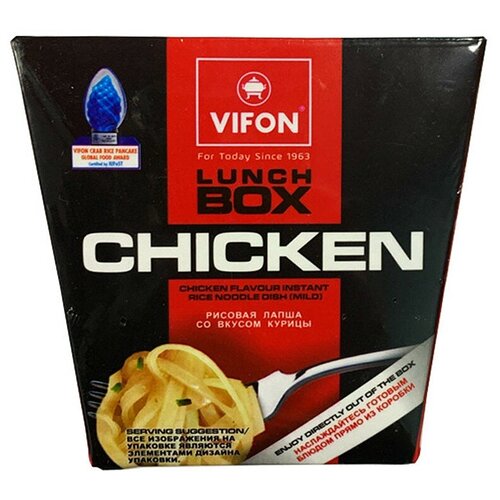 Рисовая лапша быстрого приготовления от вьетнамского производителя в упаковке-коробке, которую удобно брать с собой на работу, поездку.