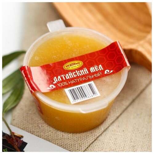 6493816 Мёд алтайский «Разнотравье» натуральный цветочный, 50 г Мёд с разнотравья отличается насыщенным ароматом и сильным медовым вкусом, обладает золотисто-жёлтым, иногда коричневатым оттенком. В народной медицине считается, что мёд с лугового разнотравья оказывает антибактериальный, противовоспалительный, болеутоляющий и седативный эффект. Рекомендуется применять для профилактики и комплексного лечения болезней органов дыхания, пищеварения, нервной системы, также в качестве общеукрепляющего средства, для повышения защитных свойств организма. Состав: мёд натуральный цветочный. Способ применения: употребляется в чистом виде: 1-2 чайные ложки дважды в день, утром и вечером, дозировка может меняться в зависимости от особенностей организма. Также мёд добавляют в чай в качестве подсластителя. Это особенно удобно для профилактического приёма. В тёплый чай добавляется 1-2 чайные ложки. Такой напиток принимается во время употребления пищи в качестве обычного питья.