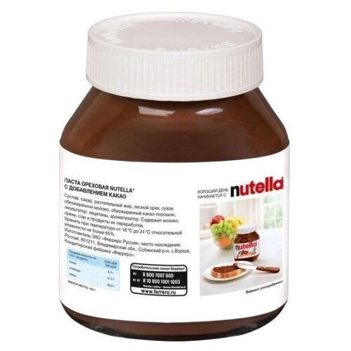 Nutella обладает неповторимым вкусом лесных орехов и какао, а ее нежная кремовая текстура делает вкус еще интенсивнее. Секрет уникального вкуса в особенном рецепте, отборных ингредиентах и тщательном приготовлении. При производстве Nutella не используются консерванты и красители. Сегодня Nutella является одной из самых узнаваемых и любимых марок в мире, продуктом, продажи которого составляют треть годового оборота компании "Ferrero". Хороший день начинается с Nutella!