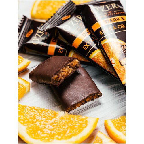 Батончик из горького шоколада с кусочками апельсина. Терпкий вкус классического горького шоколада для ценителей настоящего вкуса, с характерным терпким вкусом элитных какао-бобов. Вкус настоящего шоколада дополняют кусочки сочного апельсина. Состав: горький шоколад (какао тертое, сахар, масло какао, эмульгаторы (соевый лецитин, Е476), ароматизатор "Ваниль"), цукаты апельсиновые (апельсиновая кожура, глю-козно-фруктозный сироп, сахар, регулятор кислотности лимонная кислота), апельсино-вые кусочки (концентрированное яблочное пюре, концентрированные соки (грушевый, апельсиновый), цитрусовые волокна, агент желирующий пектин, регулятор кислотности лимонная кислота, негидрогенизированное пальмовое масло, ароматизатор натуральный апельсиновый). Возможно наличие незначи-тельного количества орехов, арахиса, молоч-ных продуктов. Массовая доля общего сухого остатка какао в шоколадной массе — не менее 56,0 %.