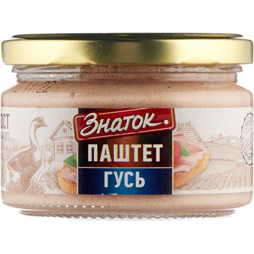 Состав: печень домашней птицы, жир домашней птицы, свинина, лук, соль пищевая, сахар, перец душистый молотый, перец черный молотый, орех мускатный, корица, гвоздика, ароматизатор (мясо гусиное).