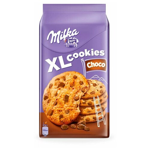 Milka XL Cookie Choco — по-настоящему большое овсяное печенье с кусочками нежнейшего альпийского шоколада. Отлично подходит как для быстрого перекуса вне дома, так и для домашнего вечера с чашечкой горячего молока или чая.