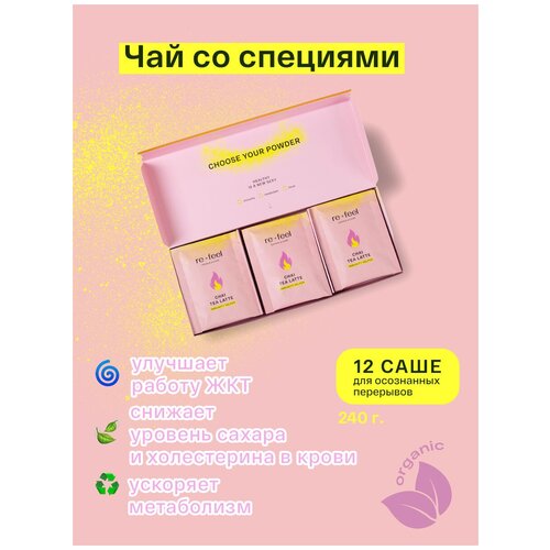 Пряный и нежный чай-латте. Яркий вкус специй бодрит и согревает, а послевкусие кокосового молока балансирует огонек. Согревает, как любимое воспоминание. Баланс во всем: снижает уровень сахара и холестерина в крови. Улучшает работу ЖКТ и ускоряет метаболизм. В коробке 12 саше для осознанных перерывов. Как готовить? 1. Насыпьте содержимое саше в чашку или термос. 2. Залейте 200 мл горячей воды 80 ºC.3. Интенсивно перемешайте. Чтобы получилась пенка, используйте венчик. Чай можно использовать иначе: готовить с ним напитки, смузи, десерты и выпечку. Экспериментируйте — в качестве основы можно взять не только воду, но и обычное или растительное молоко. Enjoy!