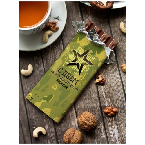 Шоколад молочный "Защитнику" Ярослав. В персональной именной упаковке — необычный, а главное, вкусный сувенир, который обязательно поднимет настроение и вызовет искреннюю улыбку у каждого. Состав в процентах: Какао-масло 30%, сахар 15%, ванилин 5%, молоко 30%, какао тертое 20%. Подарок на 14 февраля, День всех влюбленных, 23 февраля, день рождения.
