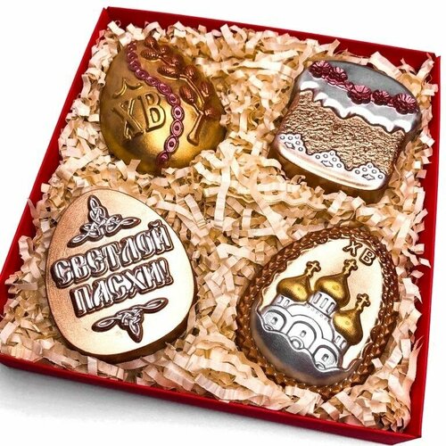 «Пасхальный №2» — шоколадный набор, который мы сделали с огромной любовью, чтобы вы могли поздравить своих самых близких людей с праздником Светлой Пасхи. Кондитеры iChoco вручную изготавливают каждую фигурку из, оригинального бельгийского шоколада премиального качества. Вот почему каждая, шоколадка — произведение художественного и кондитерского искусства. Набор упакован в подарочную коробку из дизайнерского картона, и перевязан атласной лентой. А чтобы шоколад добрался до вас в целости и, сохранности, мы дополнительно упаковали его в пупырчатую пленку и коробку из, гофрокартона. А еще вас ждет маленький подарок – шоколадная, дегустационная мини-плитка. В состав набора входит, 4 фигурки, из натурального бельгийского молочного шоколада. Фигурки с одной стороны плоские (2D). Фигурки не полые внутри. Фигурки: яйцо "ХВ" кулич, Светлой Пасхи, церковь, Размер коробки: 19,5 X 18,5 X 3,5 см, Вес: ~ 300 гр.