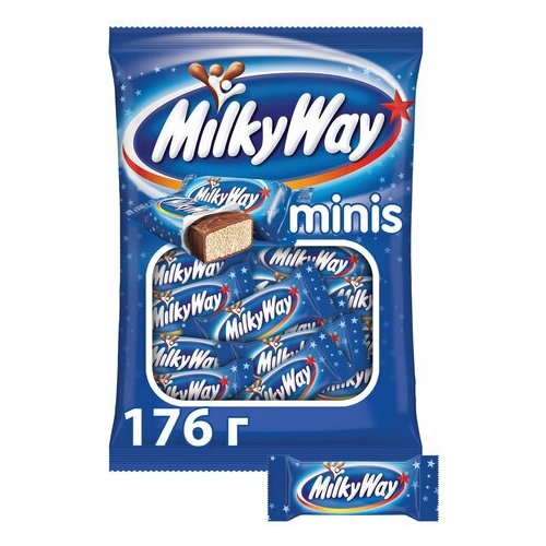 Шоколадные батончики MILKY WAY с карамелью и легкой шоколадной нугой с ярким ванильным вкусом. В упаковке 11 штук по 16 г. Каждый батончик в индивидуальной упаковке.