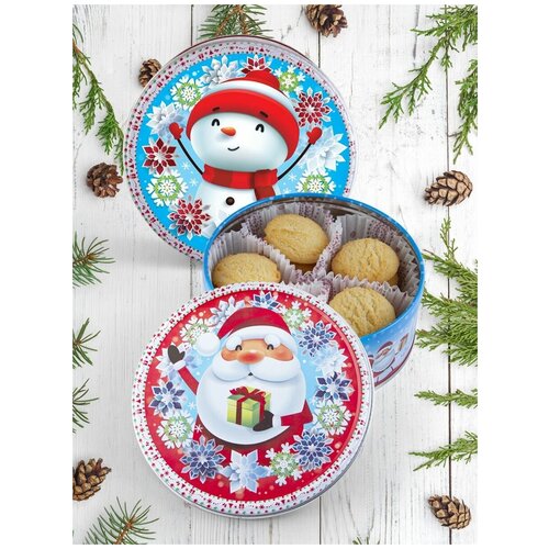 Яркая подарочная жестяная банка со сдобным печеньем "Дед Мороз и Снеговик" от ГК "Сладкая сказка" станет прекрасным подарком детям, близким, друзьям и коллегам на Новый год или Рождество. В каждой банке- 150 грамм сдобного печенья, которое производится на российской фабрике по проверенной рецептуре и не содержит трансжиров. На крышке изображены главные герои новогодних праздников: Дед Мороз и его помощник — забавный снеговичок. Такая банка украсит любой праздничный стол, а после того, как печенье закончится, её можно использовать для хранения различных мелочей или сладостей. Вес одной банки — 150 грамм.