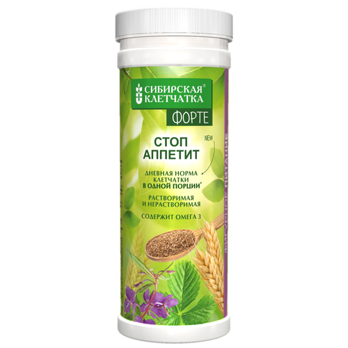 СИБИРСКАЯ КЛЕТЧАТКА Стоп аппетит Форте позволит съесть намного меньше еды за счёт содержания семян чиа, богатых омега-3 жирными кислотами. Рекомендуется употреблять с большим количеством воды за 15 минут до приёма пищи.