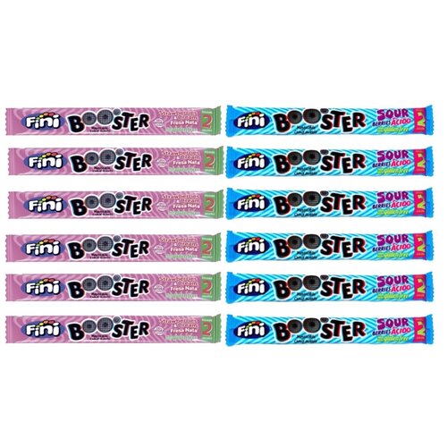 Новинка от известного испанского производителя сладостей FINI. Жевательная конфета-тянучка со вкусом клубники со сливками и конфета-тянучка со вкусом кислых ягод.