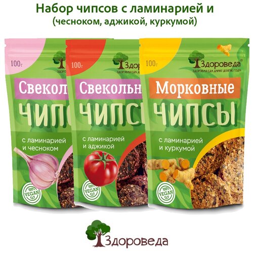 Набор №2 овощных чипсов Здороведа с ламинарией (чеснок, аджика, куркума)
