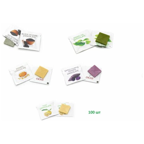 Шоколадки Okasi Minis ассорти по 5г, Кинако, Батат, Юдзу, Кунжут, Матча, набор из 50 штук