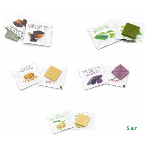 Шоколадки Okasi Minis ассорти по 5г, Кинако, Батат, Юдзу, Кунжут, Матча, набор из 5 штук