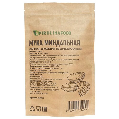 Мука миндальная жареная не бланшированная крупный помол , 350 гр