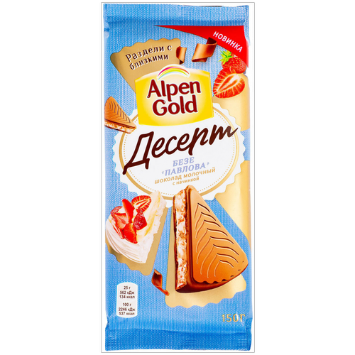 Шоколад молочный "Alpen Gold Десерт "Безе Павлова" с клубничной начинкой c безе, 150г