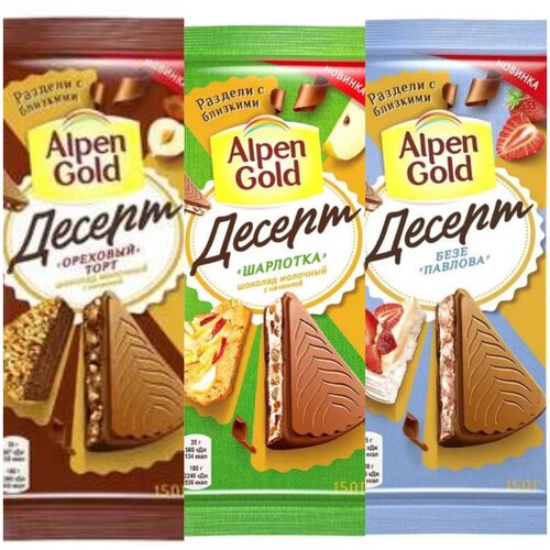 Набор Alpen Gold Десерт "Безе Павлова","Ореховый торт", "Шарлотка" 3 х 150 г