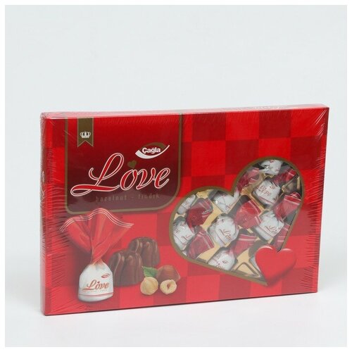 Молочные шоколадные конфеты Love с начинкой из сливок со вкусом фундука 270г