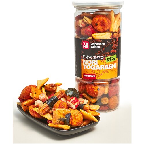 Японский снек-крекер-микс TOMO NORI TOGARASHI необычные,острые,закуска к пиву,чипсы нори,из морской капусты,орешки,орешки,овощные,не мягкие,вкусы мира