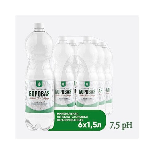 Вода BOROVAYA (Боровая), лечебно-столовая минеральная питьевая природная сульфатно-кальциевая негазированная/ для похудения, пэт 1.5 л х 6 шт