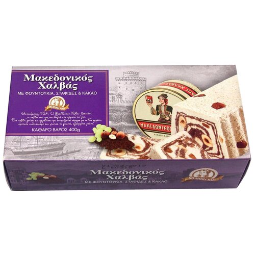Македонская халва HAITOGLOU с фундуком, изюмом и какао "MACEDONIAN HALVA", 400 гр.